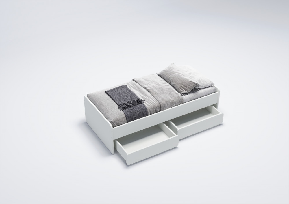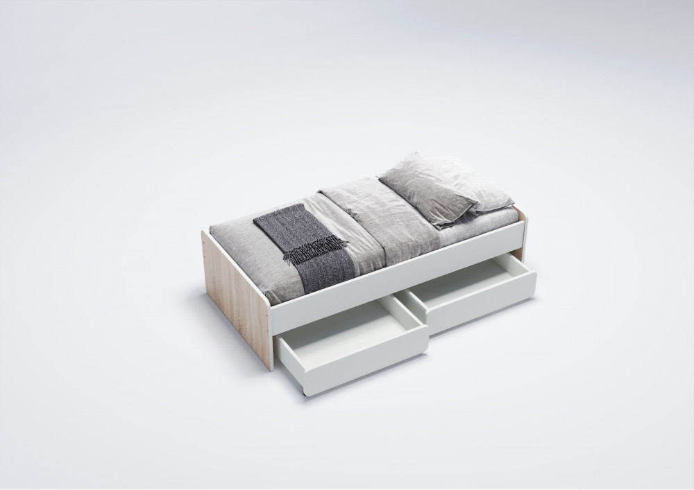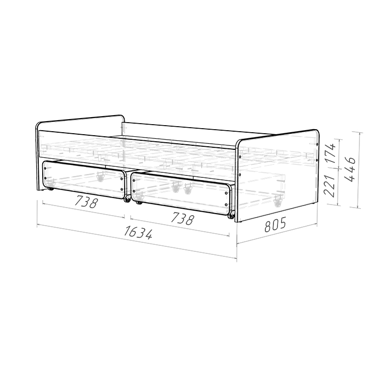 3.    Удобство хранения: Кровать оснащена двумя выкатными ящиками на колесиках, которые предоставляют дополнительное место для хранения игрушек, постельного белья или других вещей, что особенно актуально в небольших детских комнатах.